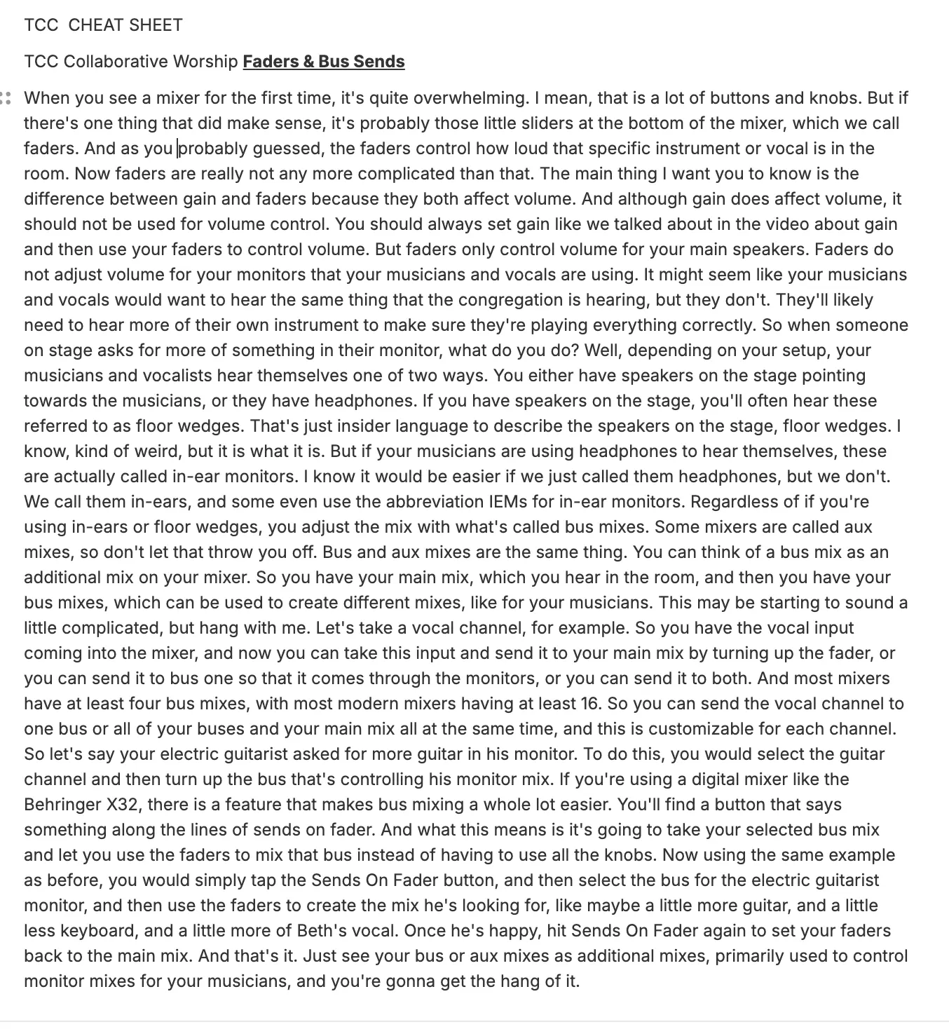 A collection of Mixing Cheat Sheets and Notes for Great Sound